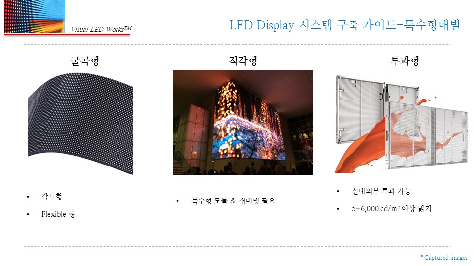 커브, 직각, 코너, 투과형 등 특수형 디스플레이까지 안정적으로 구현합니다.