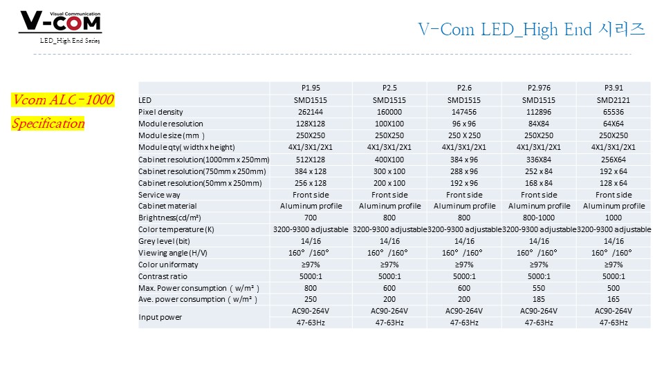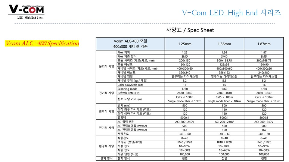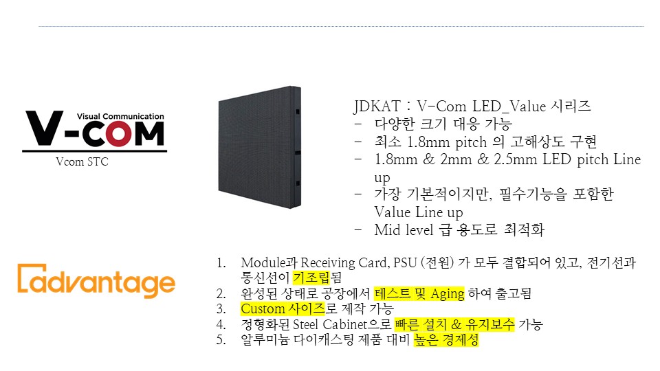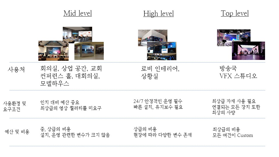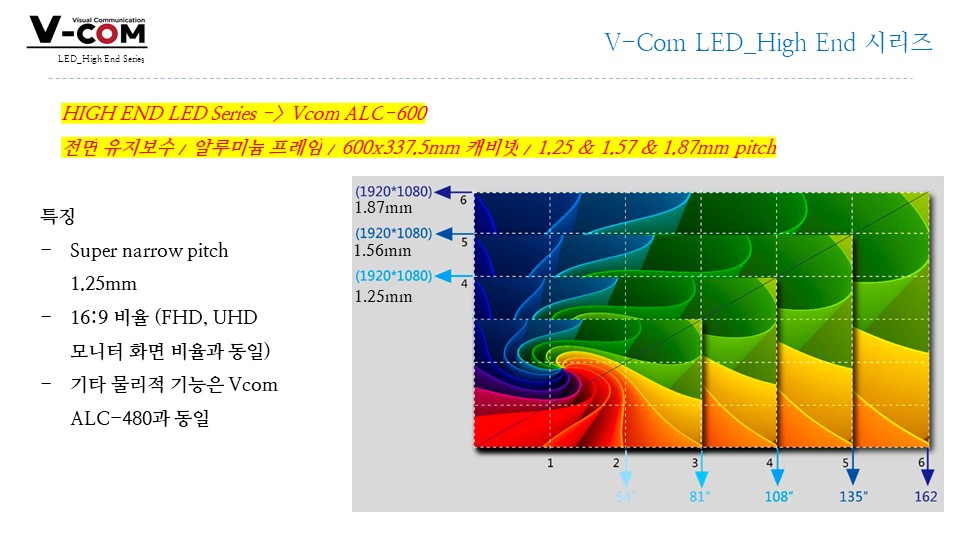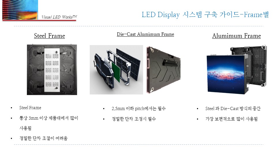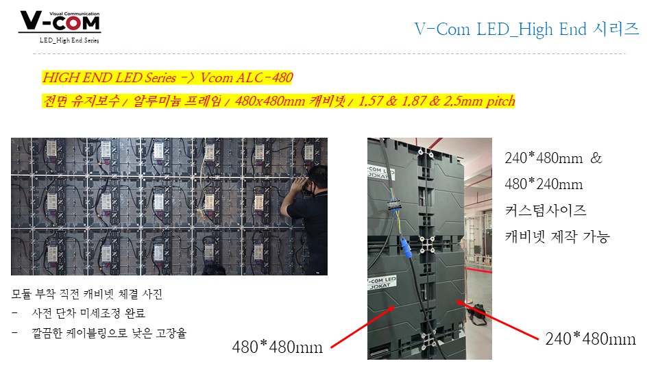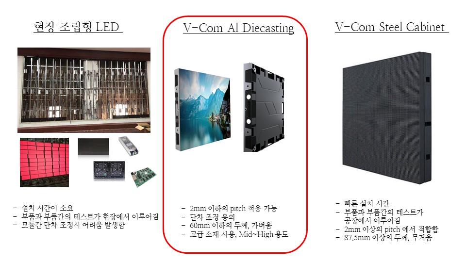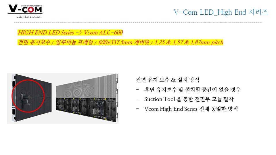 전면 유지보수, FHD/UHD 매칭 용이, 정밀 단차 보정