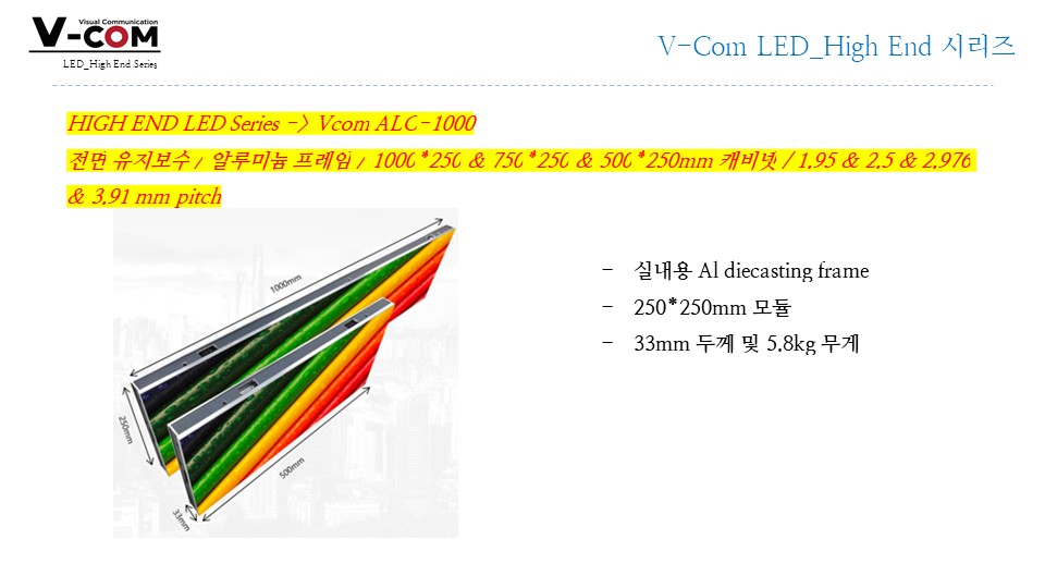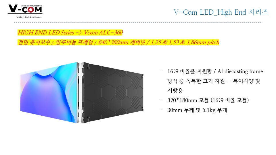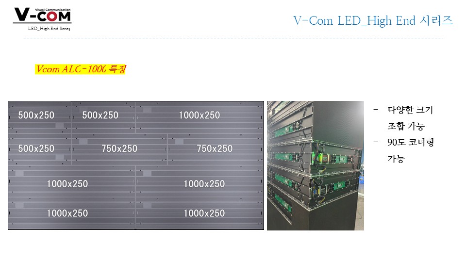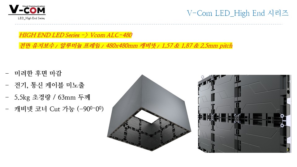 슬림/경량, 90° 코너 구현, 대형 월 구성 유리