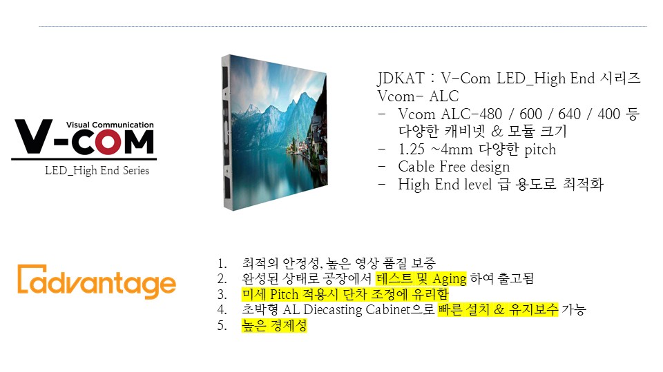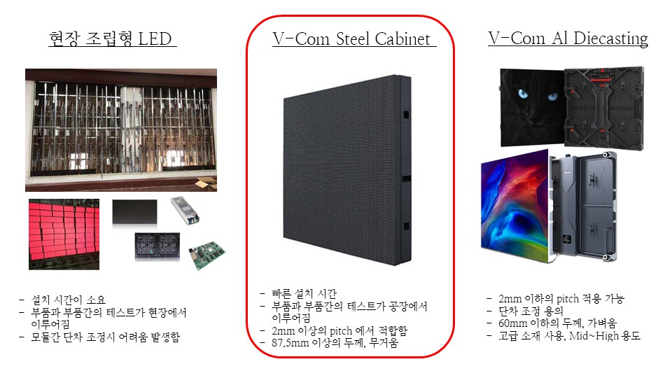 전면 유지보수, FHD/UHD 매칭 용이, 정밀 단차 보정